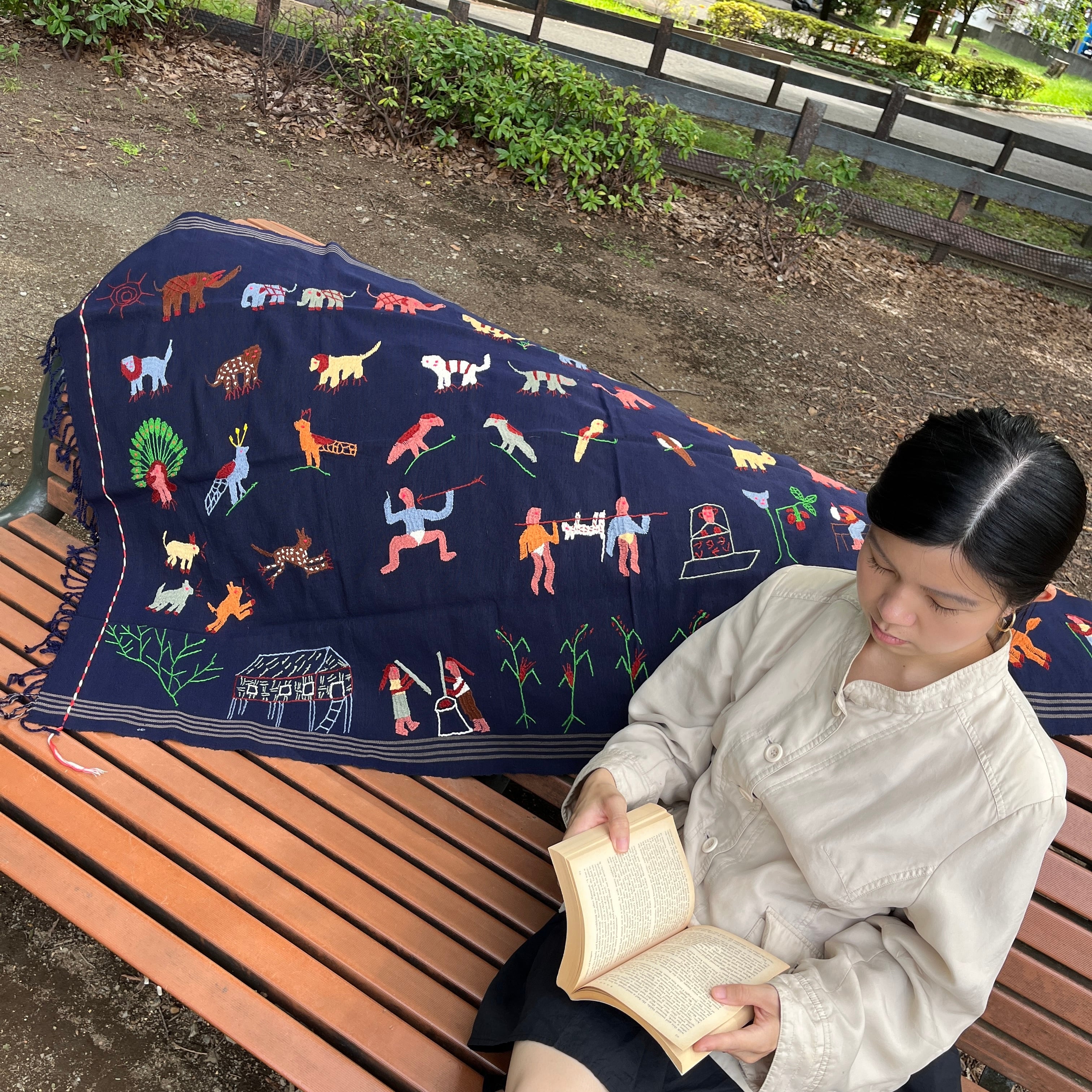 ミャンマー・チン族手刺繍布【ネイビー】Lot.2