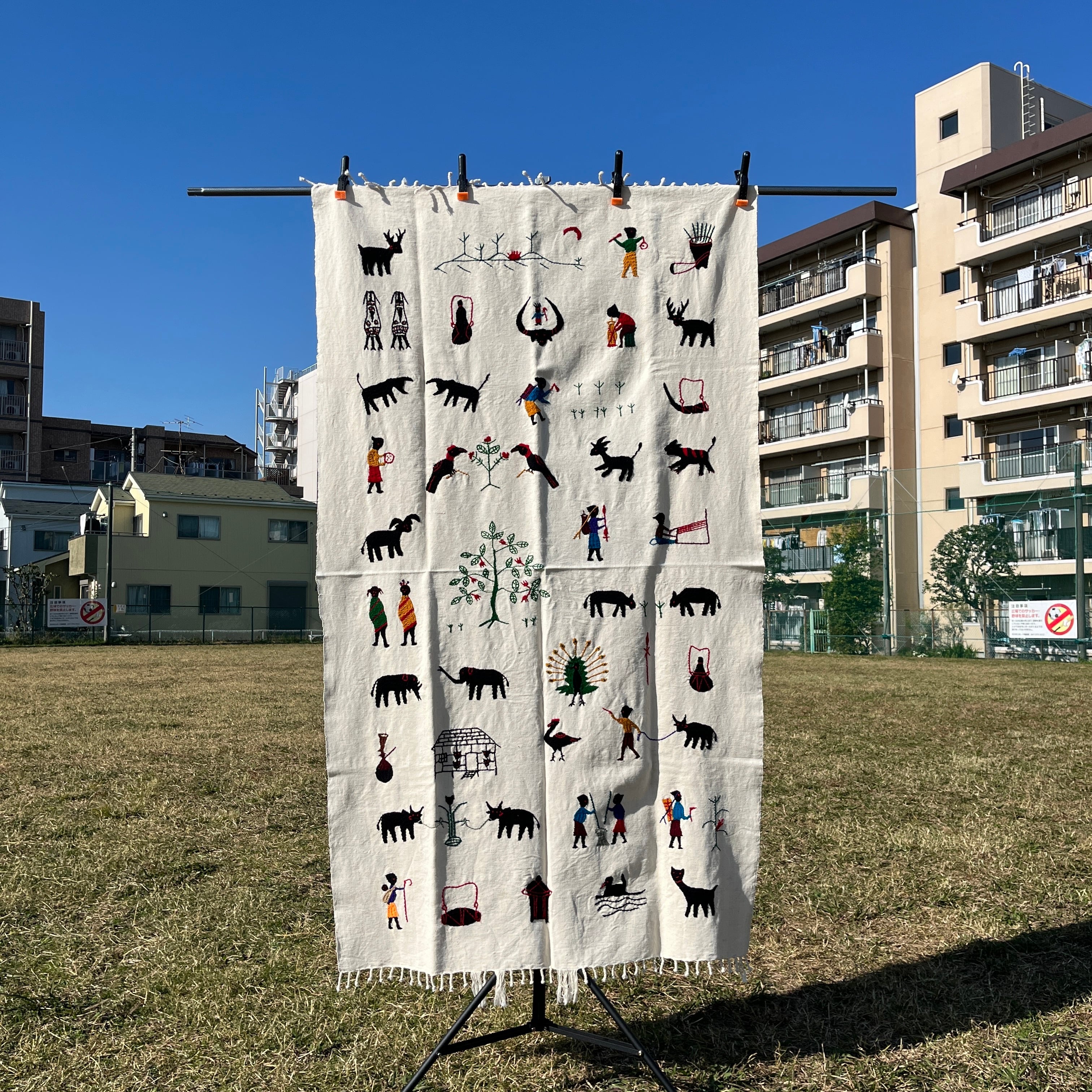 ミャンマー・チン族手刺繍布【縦タイプ・ホワイト】Lot.2